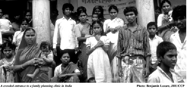 A crowded entrance to a family planning clinic in India